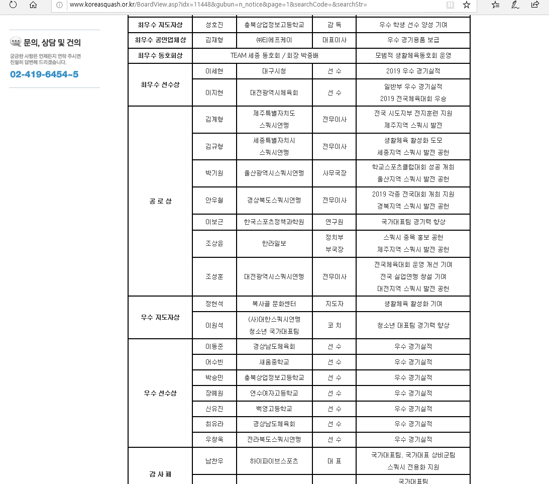 2020 새해에도 변함없이 변함없이 즐겁고 빡세게 가르쳐주시는 코치님께 감사드립니다. 앞으로도 지금 처럼 변함없이 즐겁고 빡쎄게 부탁드리겠습니다~ 또한 '2019 한 해를 빛낸 스쿼시인 시상식'에서 '우수지도자상' 받으신거 축하드립니다~ http://www.koreasquash.or.kr/BoardView.asp?idx=11448&gubun=n_notice&page=1&searchCode=&searchStr=