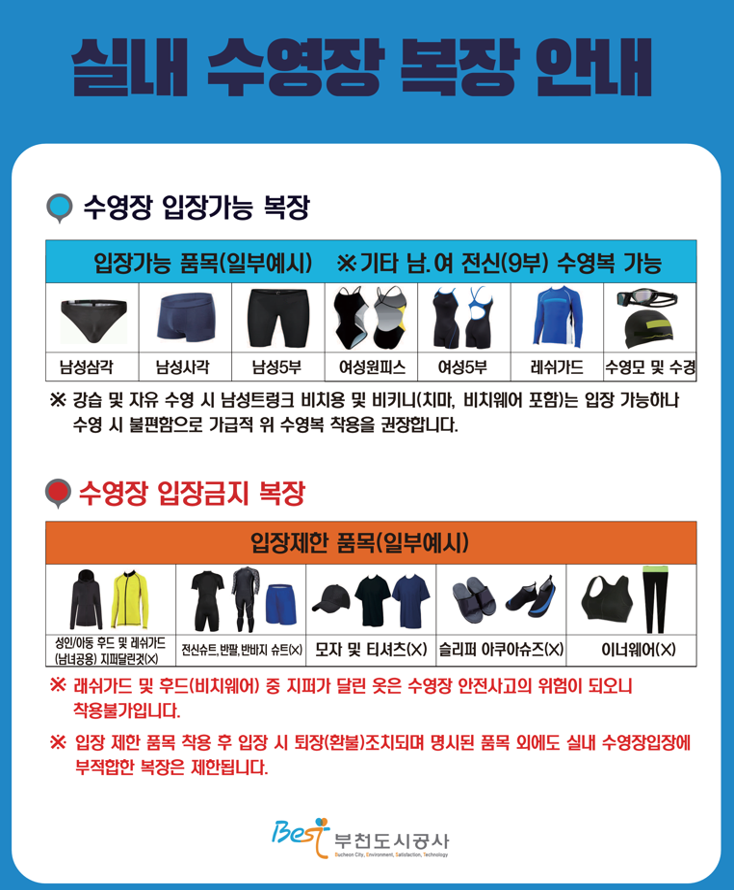 소사국민체육센터 수영장 입장 시 복장 및 나이 제한이 있나요?