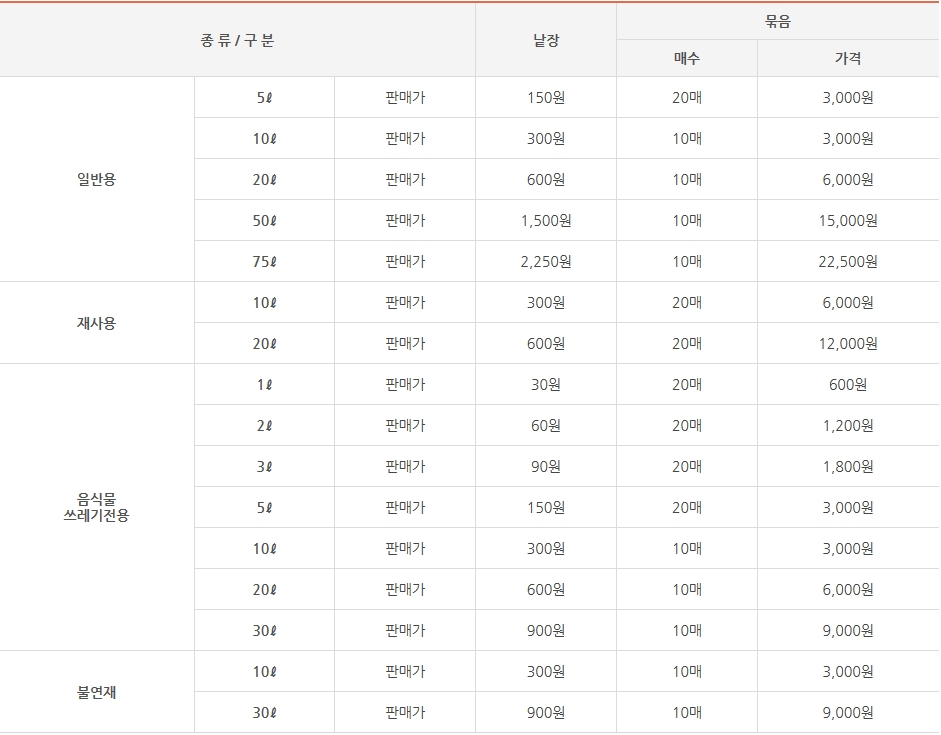 종량제봉투판매 종량제봉투의 종류와 가격을 알고 싶어요 작성자 박** 등록일자 2023년 2월 10일 9시 46분 19초 조회 174 종량제봉투 종류와 가격.png [ Size : 165.88KB , Down : 218 ] 미리보기 다운로드 목록보기
