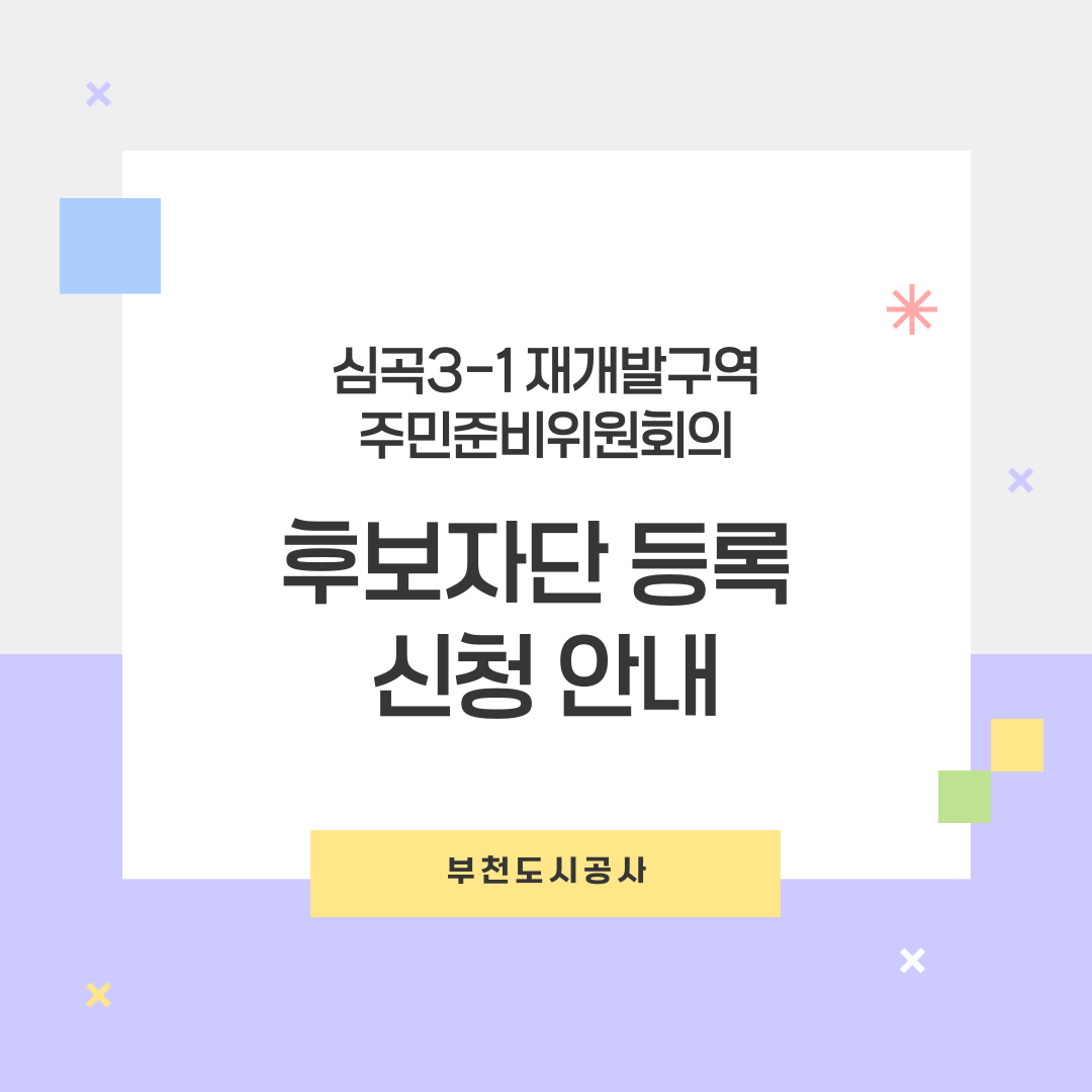 심곡3-1구역 공공재개발사업 「주민준비위원회의」 후보자단 등록 신청(입후보) 안내