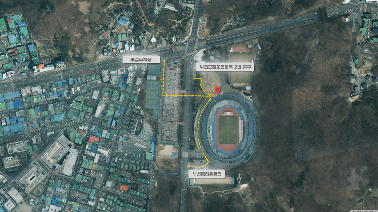 - (차량) 경기도 부천시 길주로 486(부천종합운동장 부설주차장)