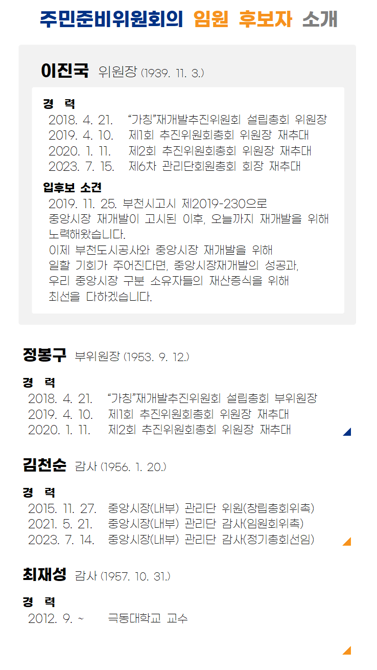 심곡3-1구역 공공재개발사업 「주민준비위원회의」 후보자단 공고 공지번호2024123 작성자 류** 등록일자 2024년 12월 2일 11시 16분 48초 조회 397 심곡3-1구역 공공재개발사업 「주민준비위원회의」 후보자단을 아래와 같이 공고합니다. 주민준비위원회의 임원 후보자 소개 양식.png [ Size : 86.14KB , Down : 195 ] 미리보기 다운로드 목록보기