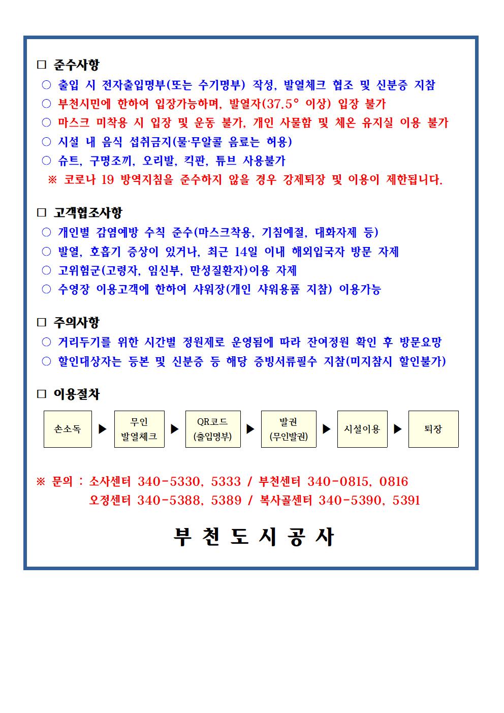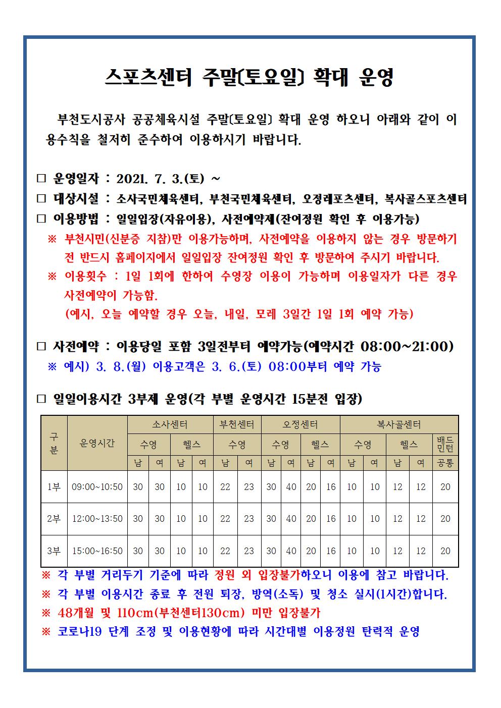 레포츠사업부 스포츠센터 주말(토요일) 확대 운영 공지번호202157 작성자 유** 등록일자 2021년 6월 28일 14시 30분 17초 조회 1,101 스포츠센터 확대운영001.jpg [ Size : 226.88KB , Down : 1,099 ] 미리보기 다운로드 스포츠센터 확대운영002.jpg [ Size : 176.25KB , Down : 1,039 ] 미리보기 다운로드 목록보기