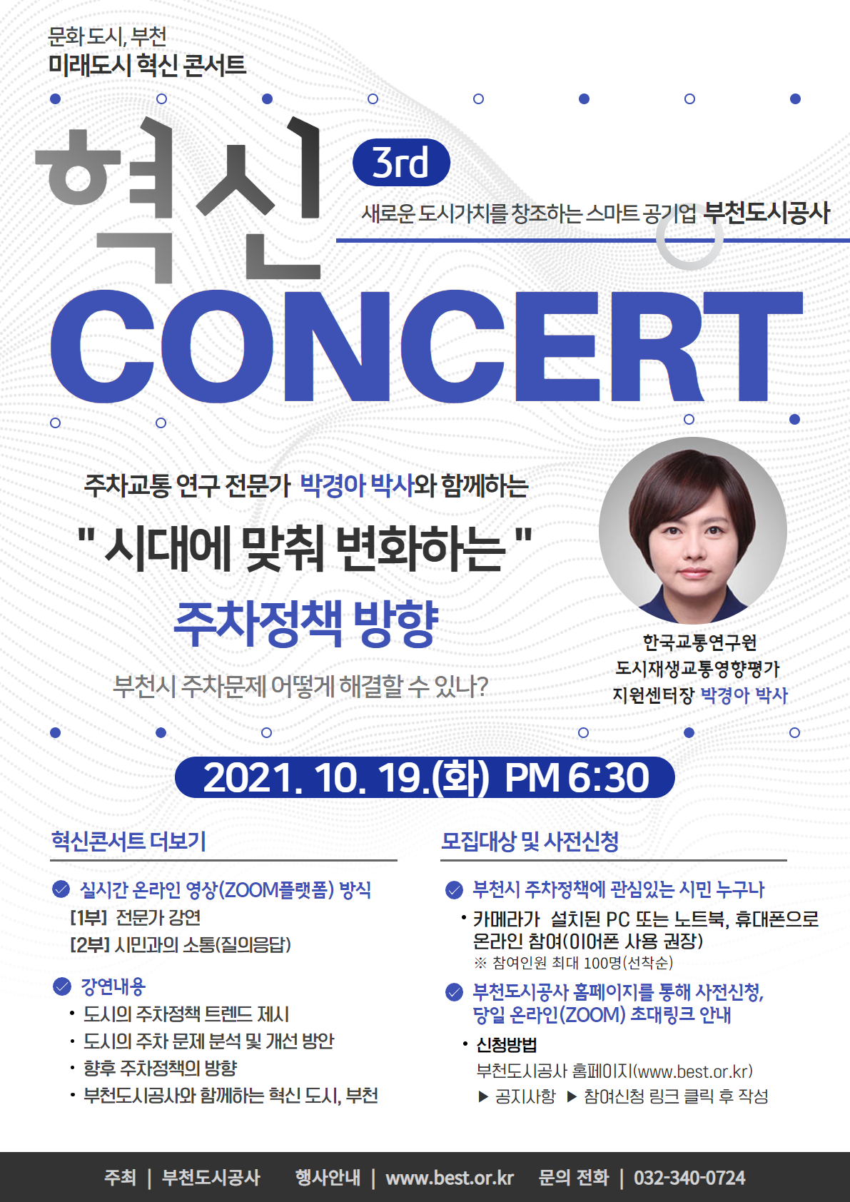 제3회 혁신콘서트가 10.19.(화) 18:30 부천 시민 여러분을 찾아갑니다.