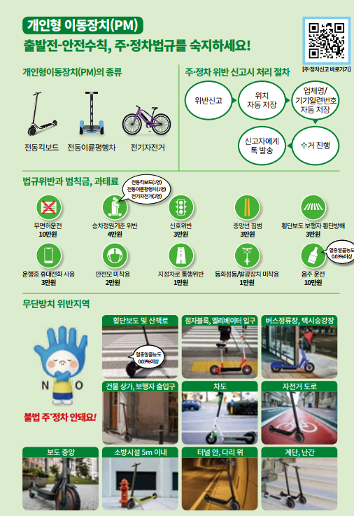 시민의 안전한 보행환경 조성 및 전동킥보드의 안전한 이용문화 정착을 위해 아래와 같이 「무단방치 전동킥보드 견인 시행」(2024. 10. 7.(월).字) 을 안내드립니다.
