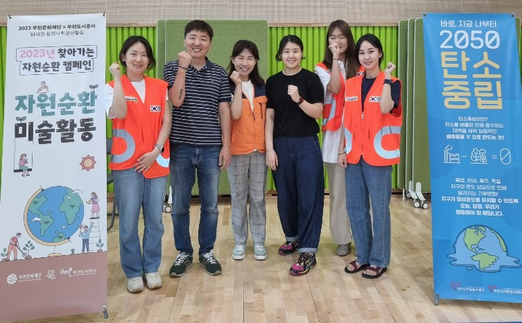 공사와 문화재단, 부천시자원봉사센터는 오정구 덕산초등학교 어린이 200여명과 함께 쓰레기 분리배출 게임, 폐지를 재활용한 미술 작품 만들기 등 탄소중립 자원순환 활동을 실시 하였다.