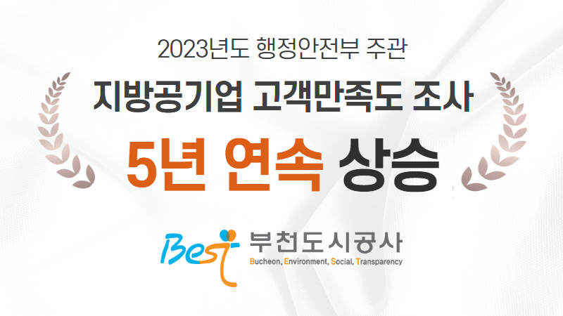 부천도시공사, 2023년도 행정안전부 주관 지방공기업 경영평가 고객만족도 5년 연속 상승