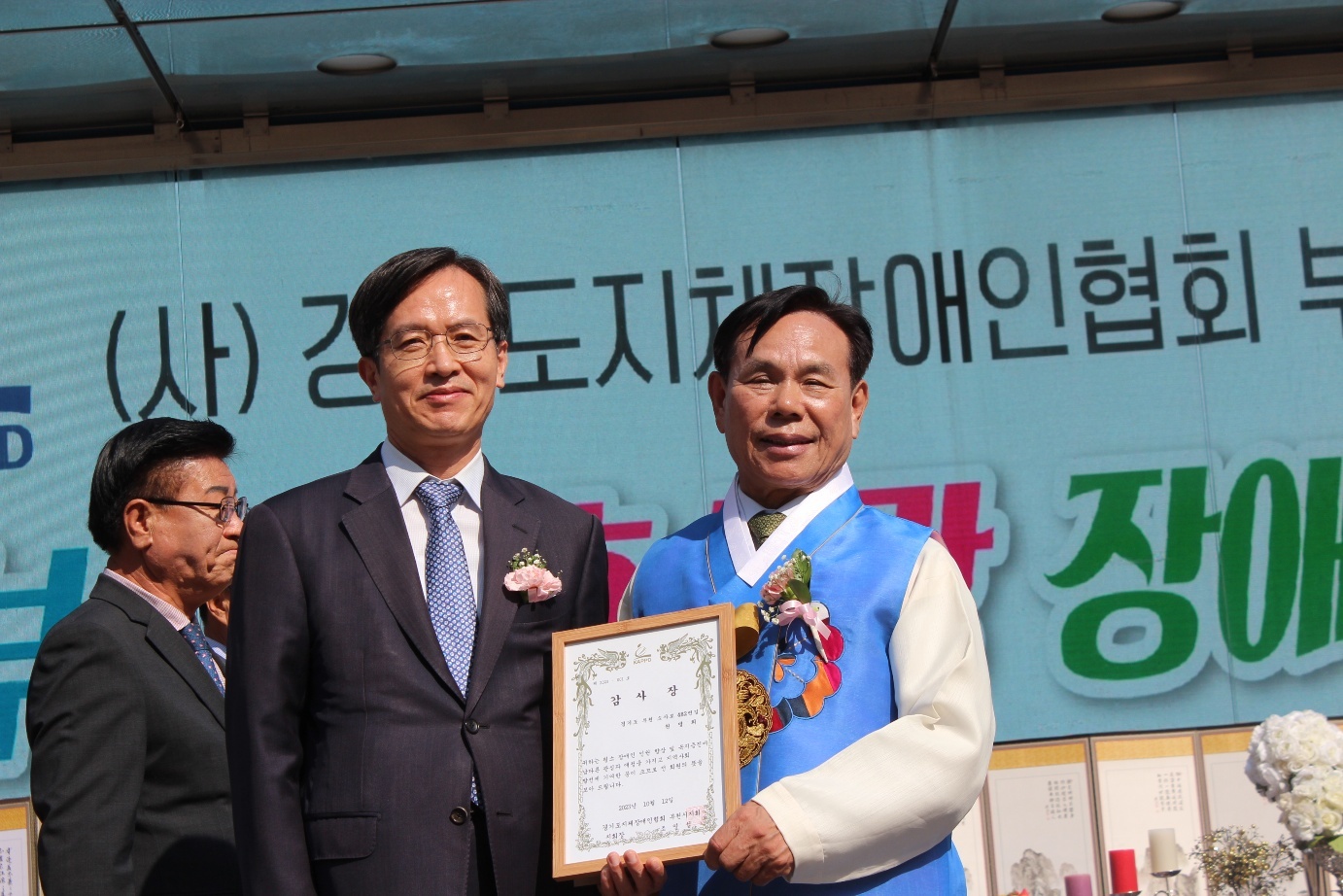 부천도시공사 원명희 사장은 평소 장애인 권익증진, 사회활동 참여 활성화 등을 위해 노력한 공로를 인정받아 감사장을 받았다.