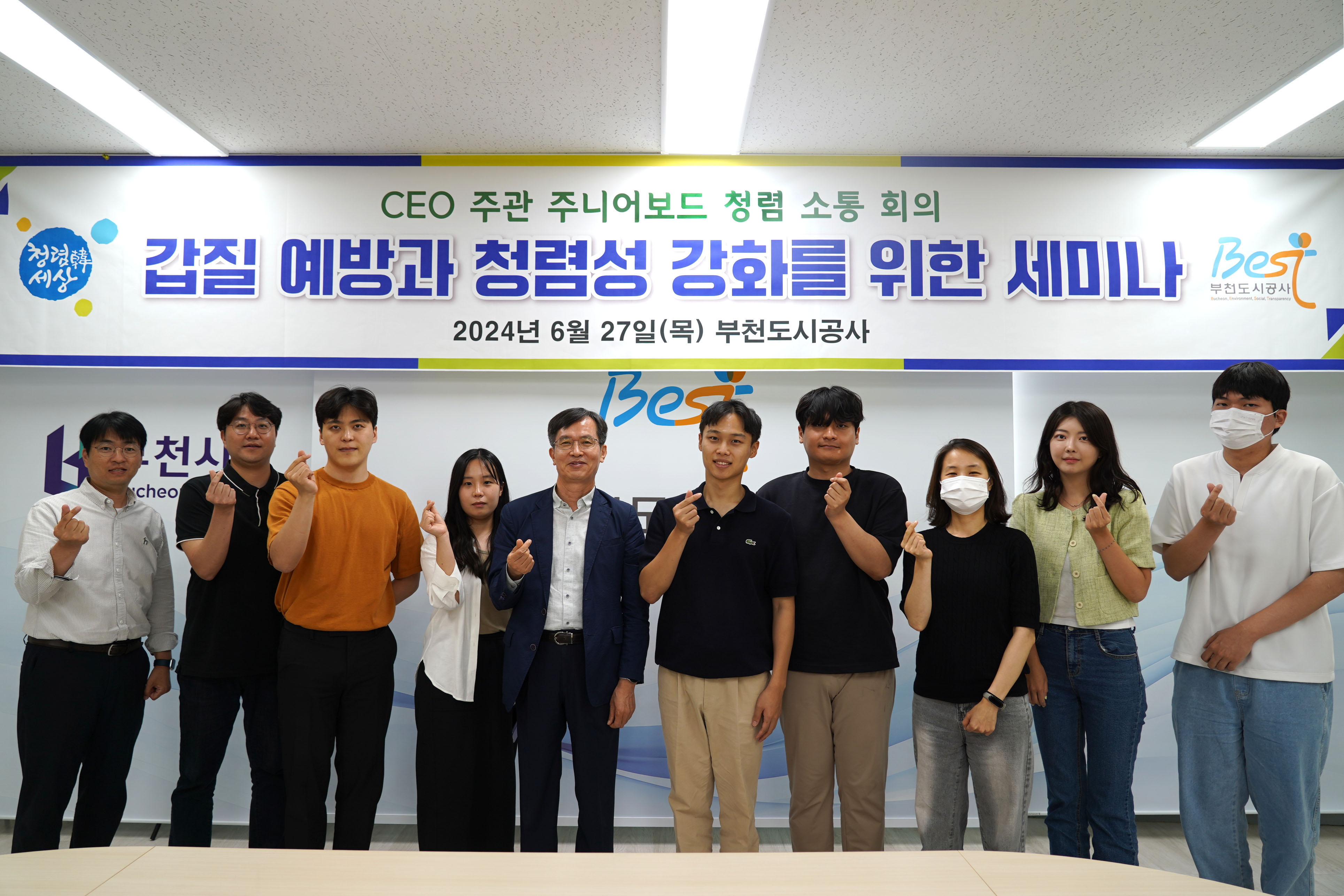 부천도시공사(사장 원명희)는 ‘갑질예방 및 청렴성 강화를 위한 CEO 주관 주니어보드 소통 세미나 ’를 개최하였다고 4일 밝혔다.