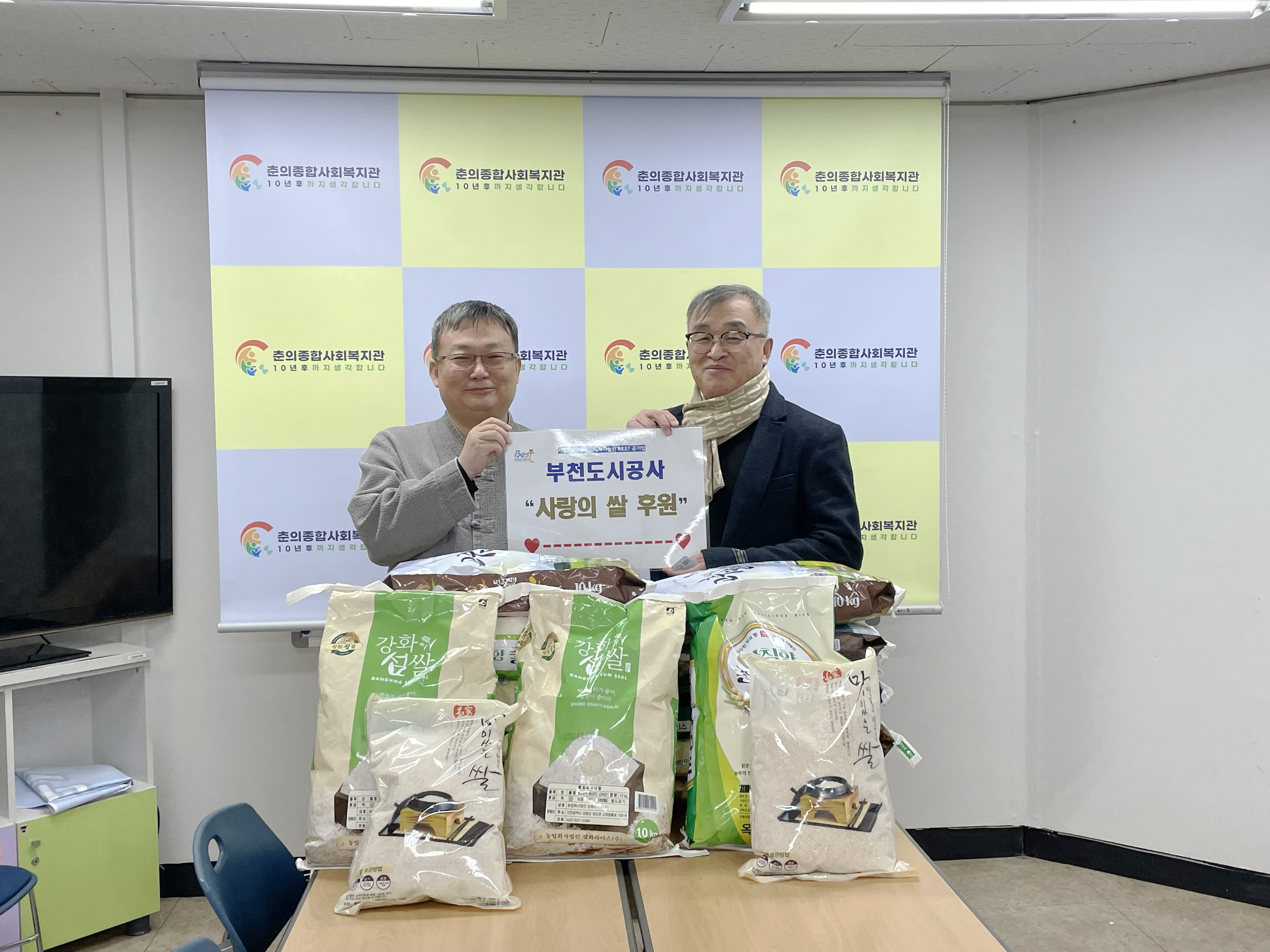 부천도시공사 하정수 사장(2월10일)은 취임식(2월10일)에 전달 받은 축하 쌀 화환을 지역사회 내 취약계층을 돕기 위해 사회복지시설에 전달했다. 취임 초기부터 지역사회와 나눔의 가치를 실천하려는 의지를 행동으로 보여주었다.