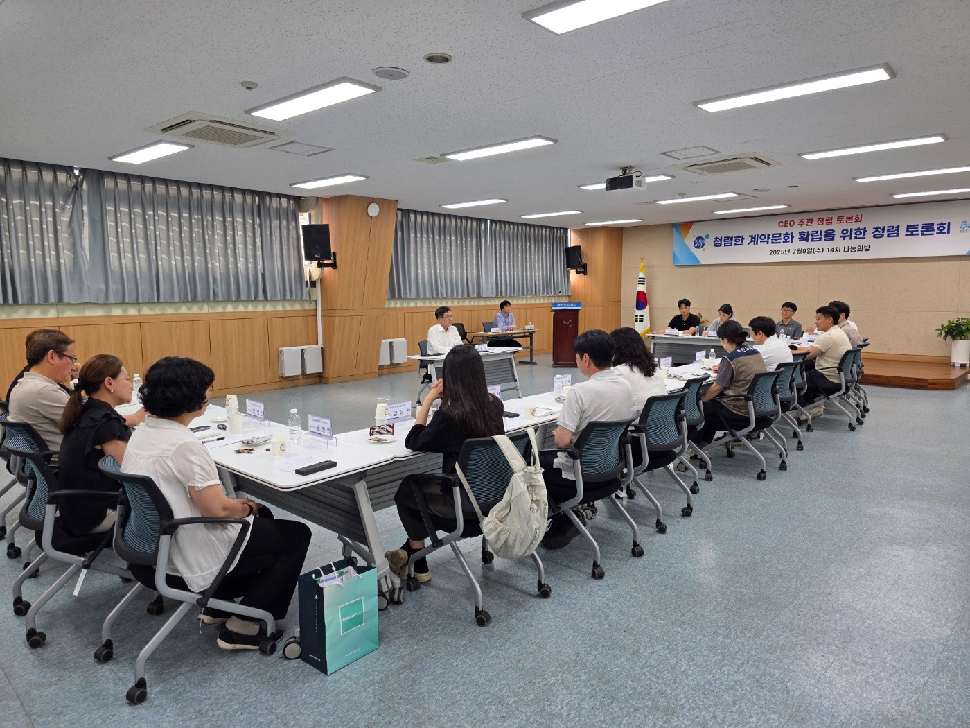 이번 토론회는 2025년 부패방지 청렴정책 추진계획에 따른 기관장 주관 청렴회의의 일환으로 마련됐다. 회의에는 원명희 사장과 각 부서 계약 업무 담당자들이 참석하여 공정하고 투명한 계약 문화 정착과 청렴행정 강화를 위한 개선방안을 집중 논의했다.