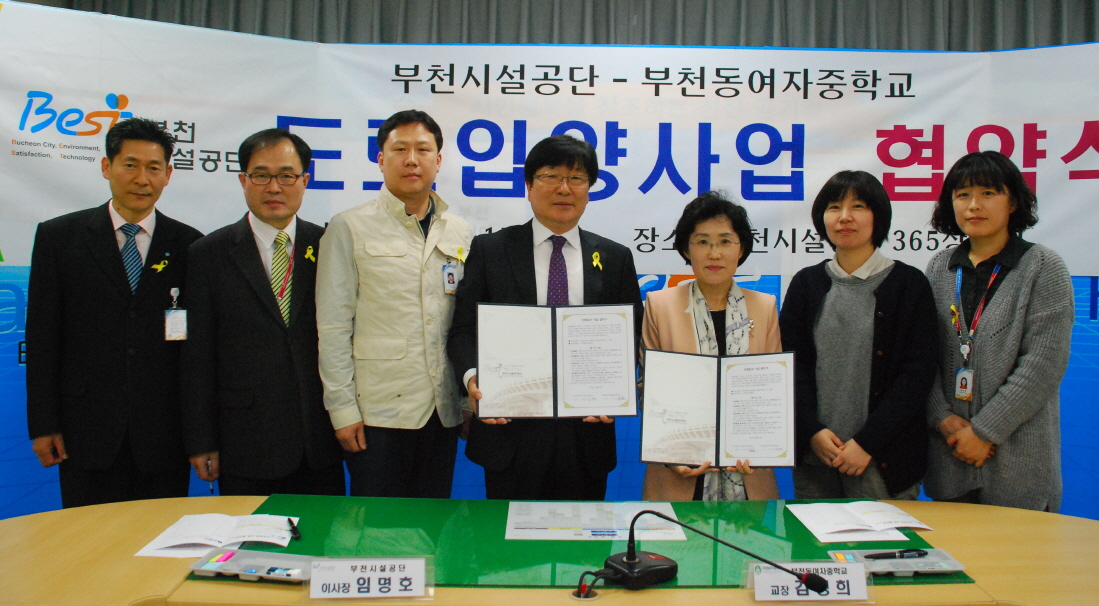 부천시시설관리공단, 지역사회와 함께 깨끗한 도시환경 조성 부천시시설관리공단-부천동여자중학교 도로입양 협약 체결 |