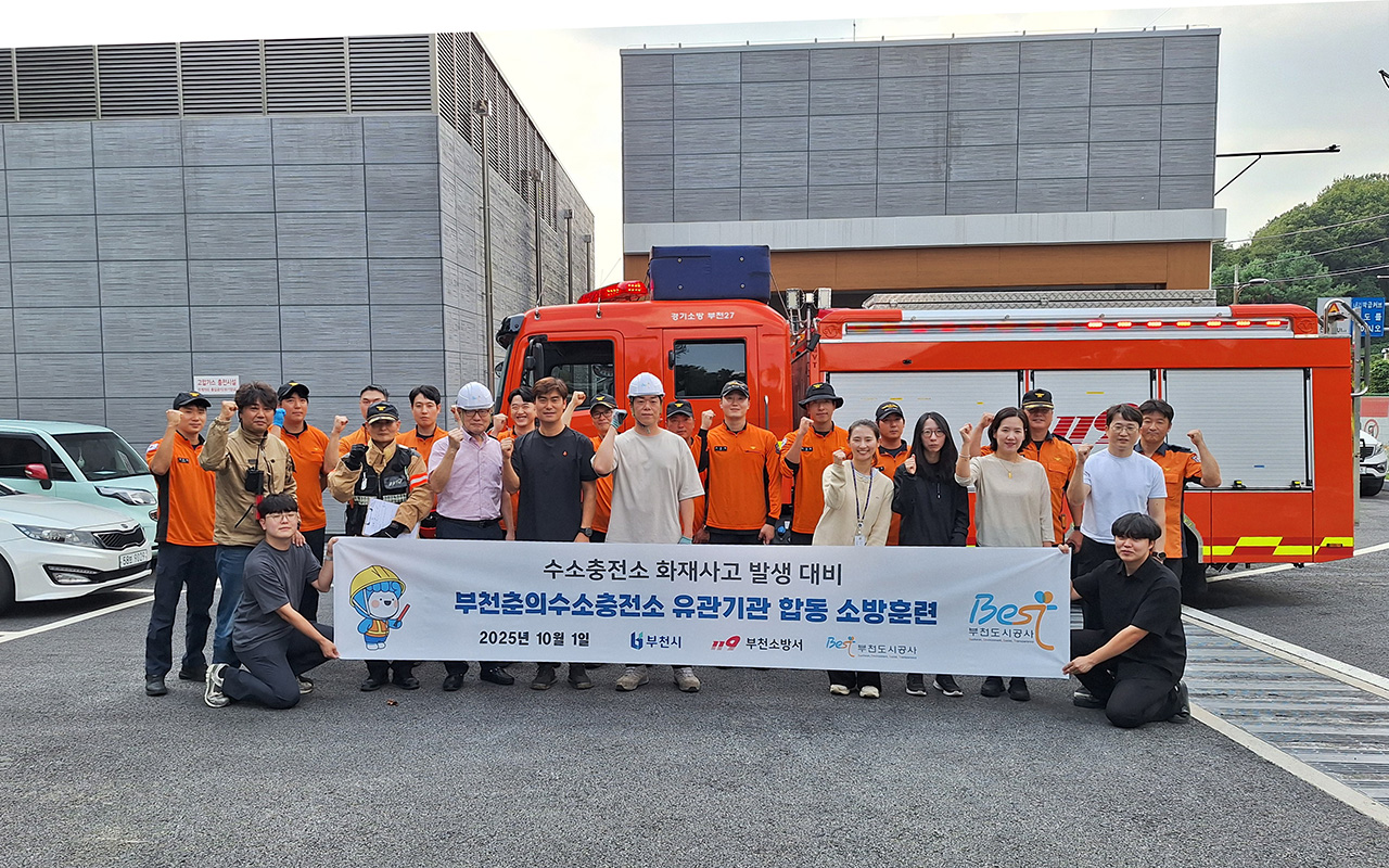 2025년도 하반기(2025. 10. 1.) 부천 춘의 수소충전소에서 비상대응력 강화를 위한 유관기관 합동 소방훈련을 실시하였다.