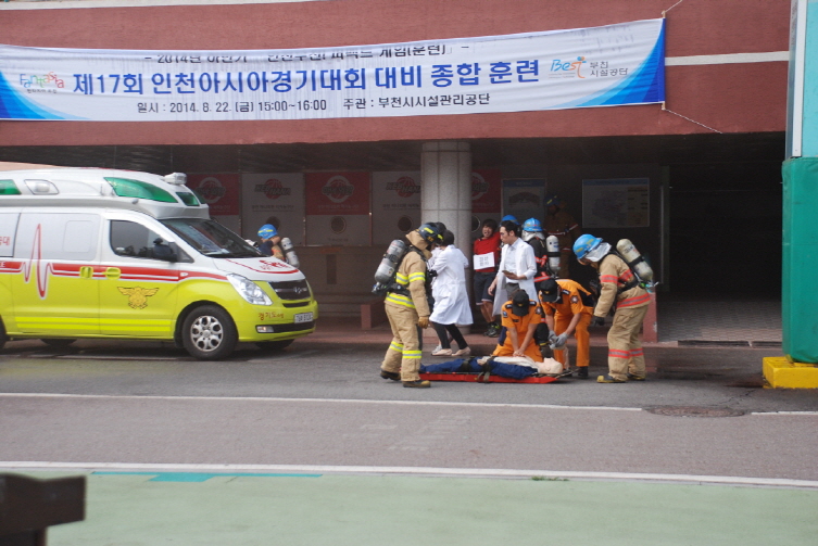 부천시는 8월 22일(금) 부천체육관에서 제17회 인천아시아경기대회를 대비하여「안전부천! 페펙트 게임」부천시-유관기관 합동 종합훈련을 실시하였다.