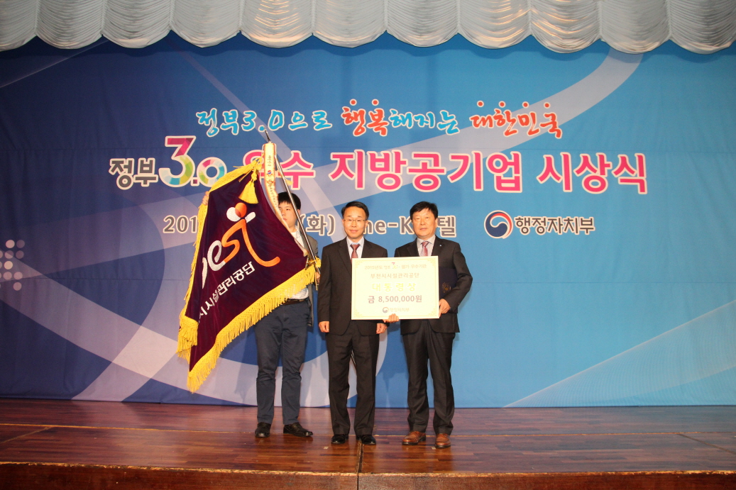 부천시시설관리공단(이사장 임명호)이 행정자치부에서 발표한 지방공기업 정부3.0 평가 최우수 공기업에 선정, 대통령 표창을 수상했다.
