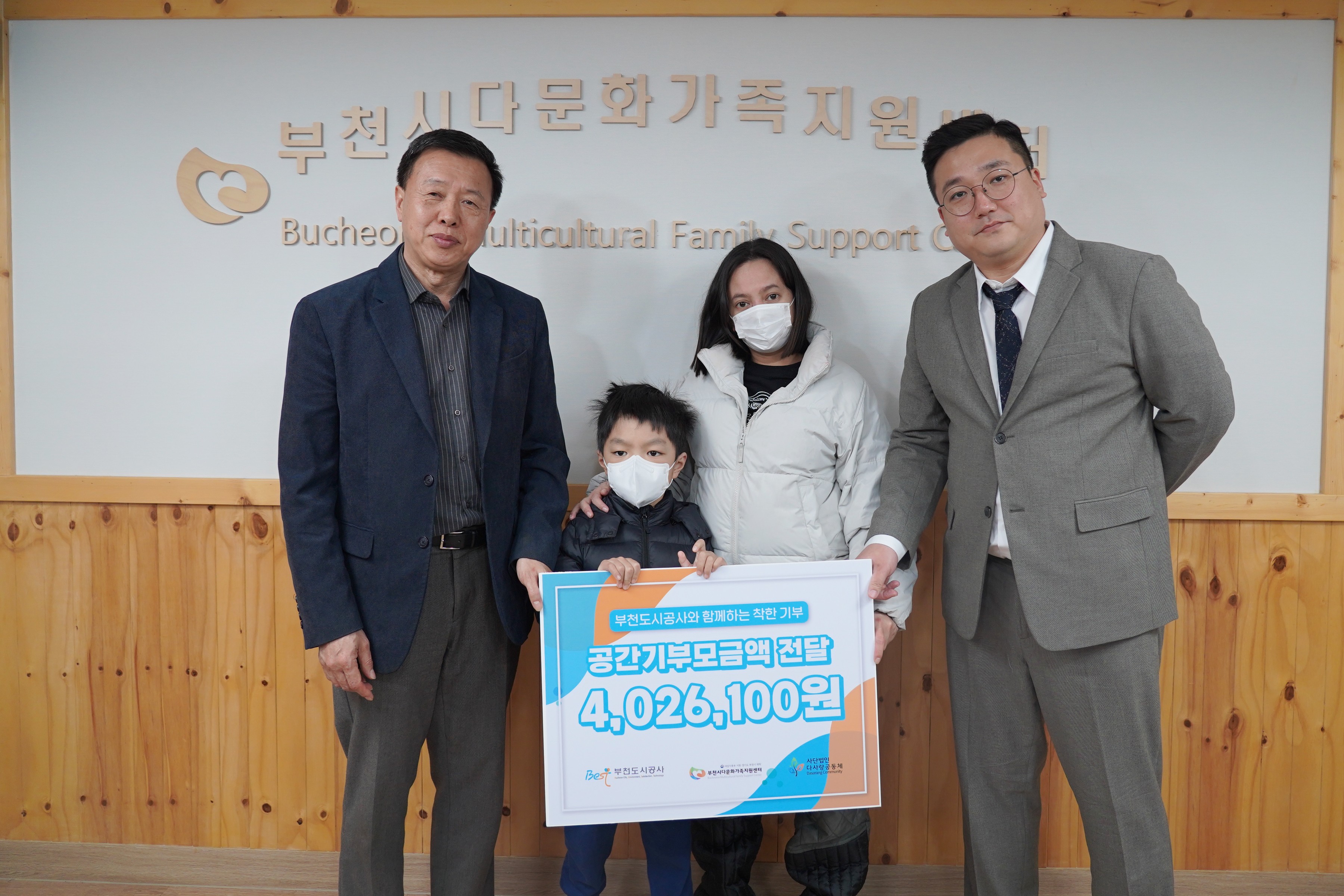 공간기부 모금액 전달식 작성자 최** 등록일자 2024년 2월 20일 13시 38분 57초 조회 395 240220 공간기부 전달식_2 다문화 공사 다사랑.JPG [ Size : 1.07MB , Down : 251 ] 미리보기 다운로드 240220 공간기부 전달식_3 공사 다사랑 지원가족.JPG [ Size : 1.25MB , Down : 239 ] 미리보기 다운로드 목록보기