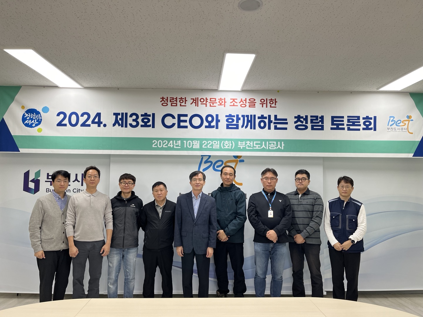 CEO와 함께하는 청렴계약토론회 작성자 최** 등록일자 2024년 10월 22일 11시 27분 19초 조회 210 청렴계약토론회 단체사진.jpg [ Size : 350.33KB , Down : 160 ] 미리보기 다운로드 청렴계약토론회 토론 모습.jpg [ Size : 327.34KB , Down : 180 ] 미리보기 다운로드 목록보기