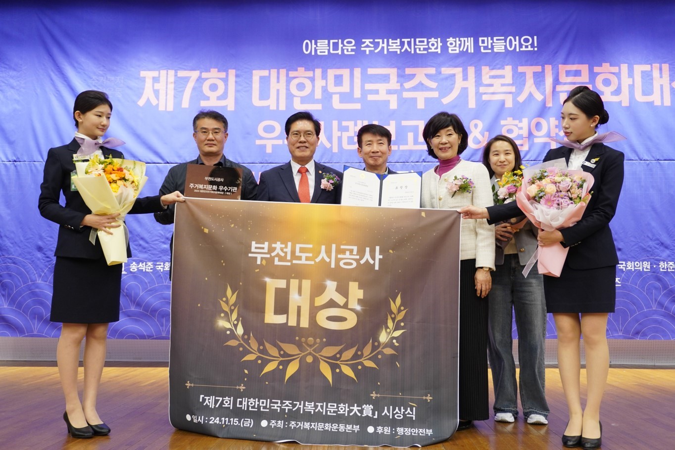 제7회 대한민국주거복지문화대상 "대상" 수상 작성자 구** 등록일자 2024년 11월 25일 16시 46분 8초 조회 396 부천시주거복지센터가지난 11월 15일(금) 국회도서관에서 열린제7회 대한민국주거복지문화대상에서 "대상"을 수상하였습니다. 시민들의 주거안정을 위해 앞으로도 열심히 뛰겠습니다. 그림3.jpg [ Size : 275.93KB , Down : 234 ] 미리보기 다운로드 목록보기