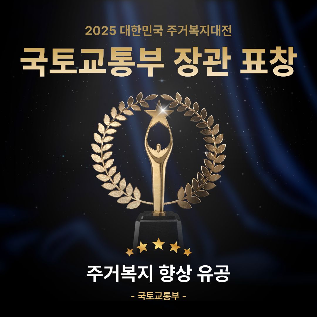 2025. 국토교통부 장관 표창 작성자 구** 등록일자 2026년 1월 29일 16시 47분 27초 조회 25 장관 표창.jpg [ Size : 97.83KB , Down : 19 ] 미리보기 다운로드 [부천도시공사] 대한민국 주거복지대전 국토교통부 장관상 수상.pdf [ Size : 423.38KB , Down : 13 ] 미리보기 다운로드 목록보기