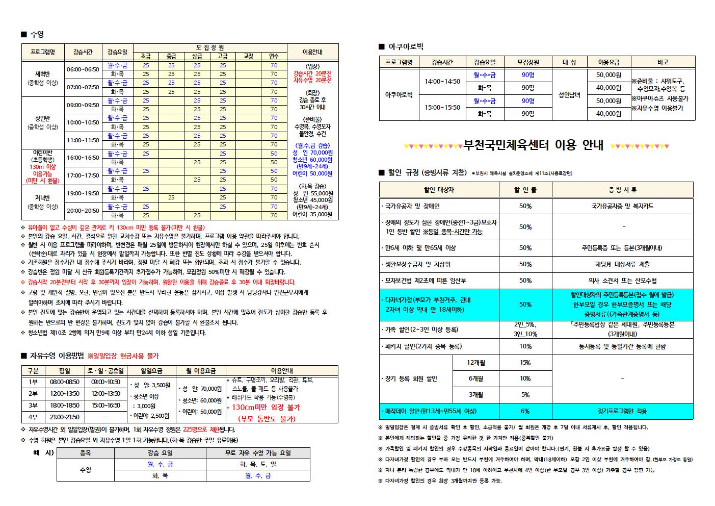 - 부천국민체육센터 이용 시 부천체육관 부설주차장을 이용하거나 대중교통을