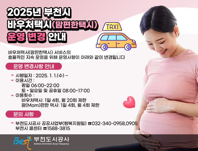 [부천시 교통약자이동지원센터] 2025년 부천시 바우처택시 등 운영 변경 사항 안내(2025. 1. 1. 字)