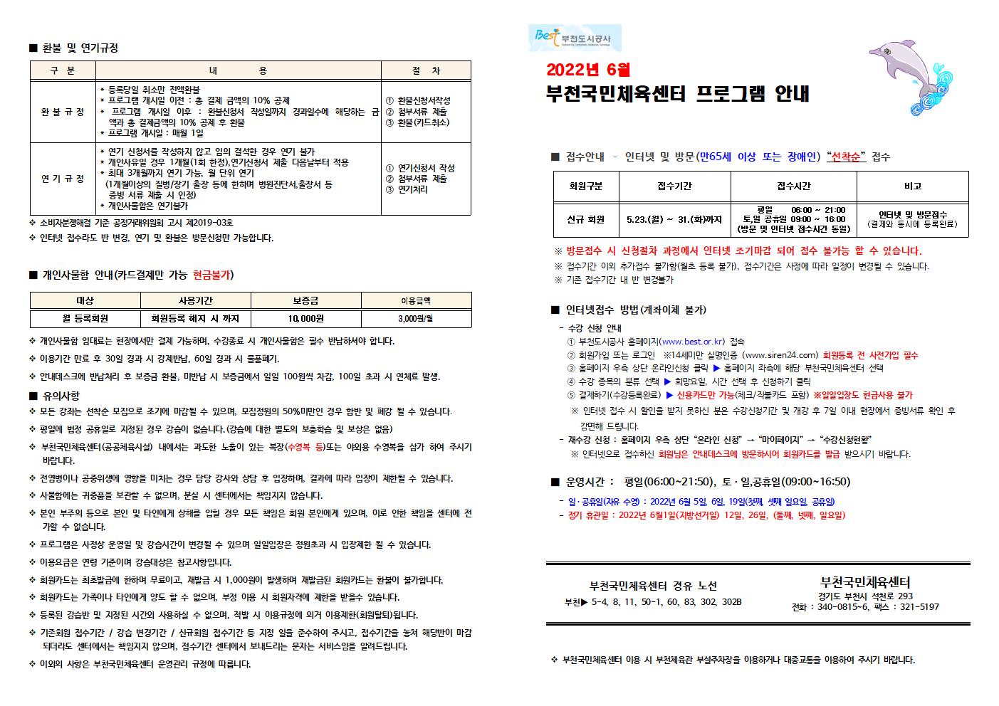 2022년 6월 부천국민체육센터 회원모집 안내