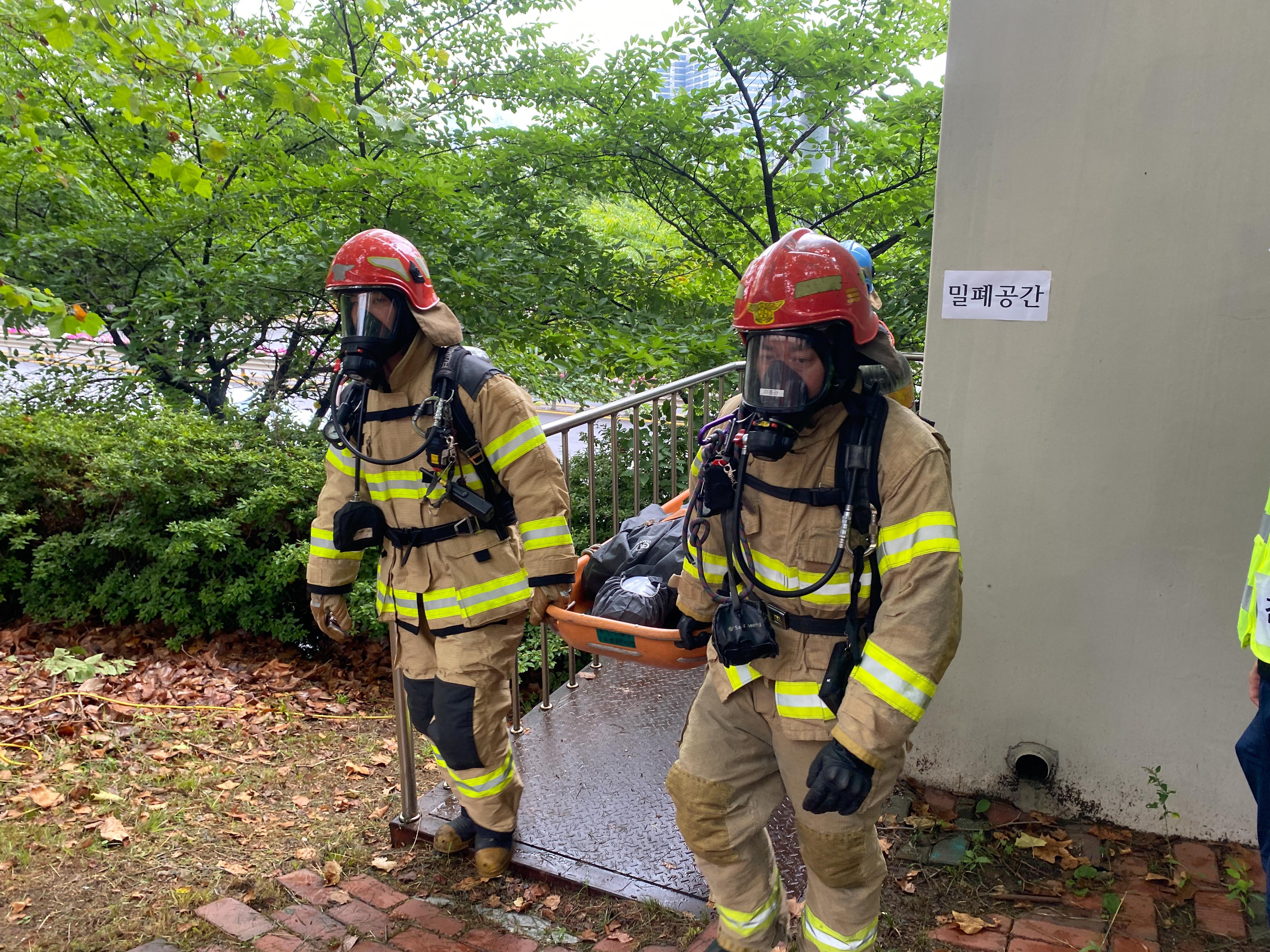 이날 훈련은 부천소방서와 합동으로 진행되었으며, 펌프실 작업자가 의식을 잃고 쓰러진 상황을 가정하여 △비상연락체계 운영 △구조용 장비의 사용 △공기호흡기 착용 △응급처치 훈련을 병행하여 실무자들의 재난 대응 역량을 키우는 계기가 되었다.