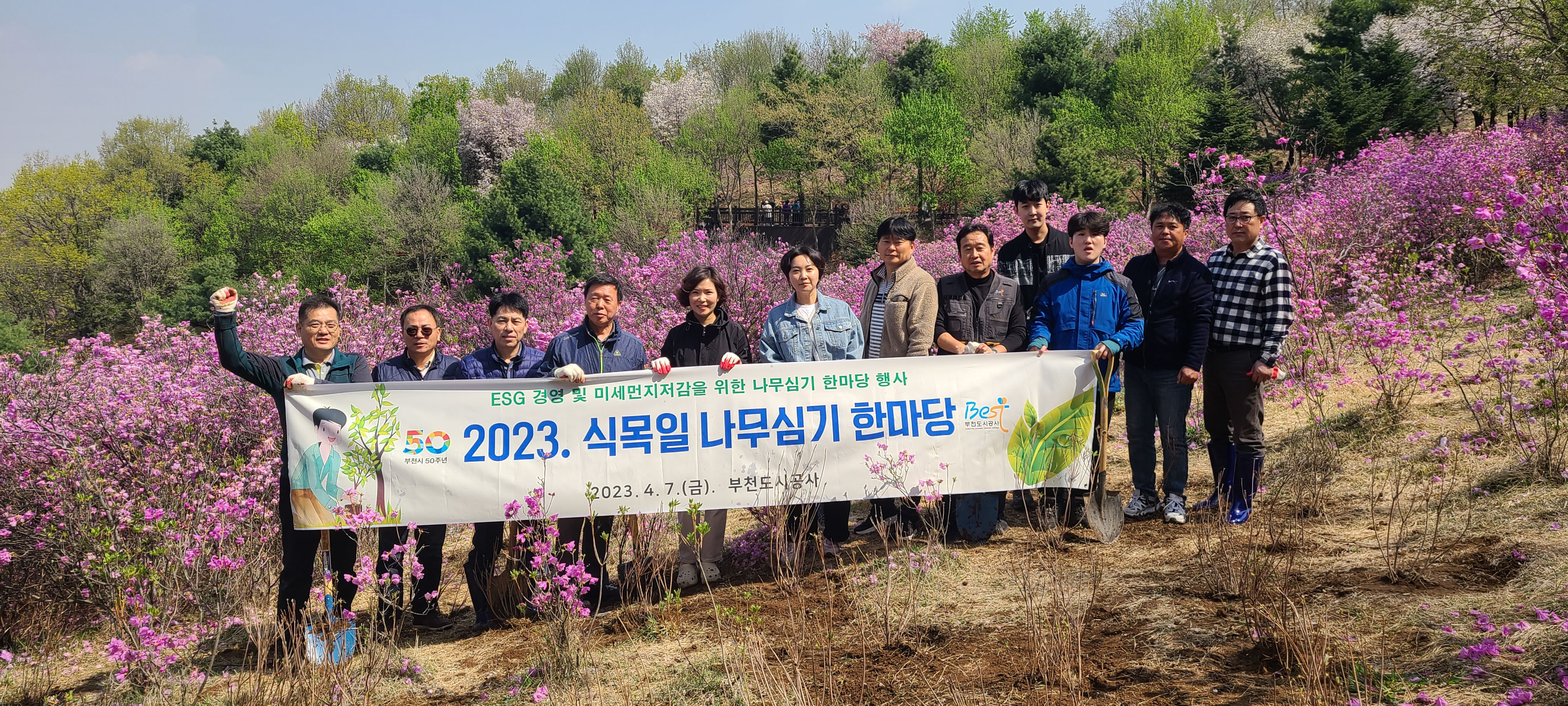 부천도시공사(사장 원명희)가 지난 7일 원미산에서 ESG 경영 및 미세먼지 저감을 통한 그린환경 조성을 위해 진달래 등 총 300그루를 심었다.