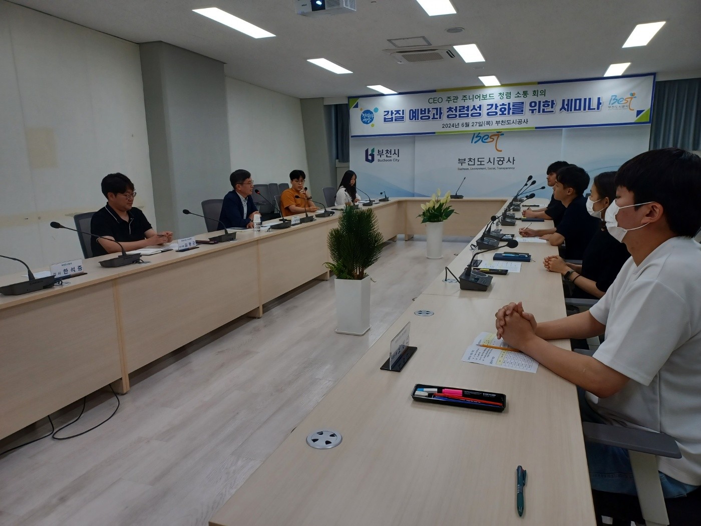 부천도시공사(사장 원명희)갑질예방 및 청렴성 강화를 위한 CEO 주관 주니어보드 소통 세미나 를 개최하였다고 4일 밝혔다.