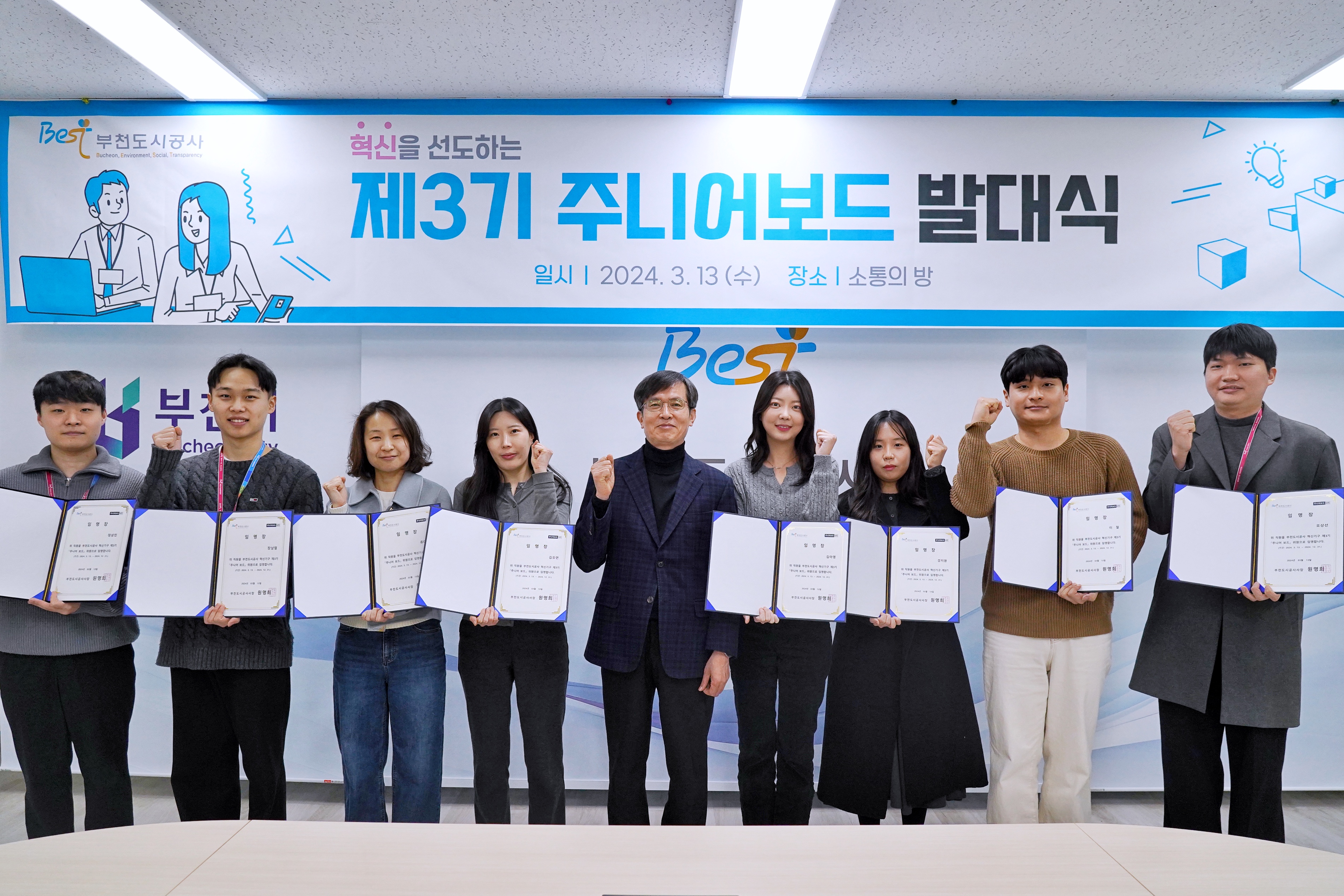 부천도시공사(사장 원명희)는 지난 13일 MZ세대 직원으로 구성된 제3기 「주니어보드」 발대식을 개최하였다.