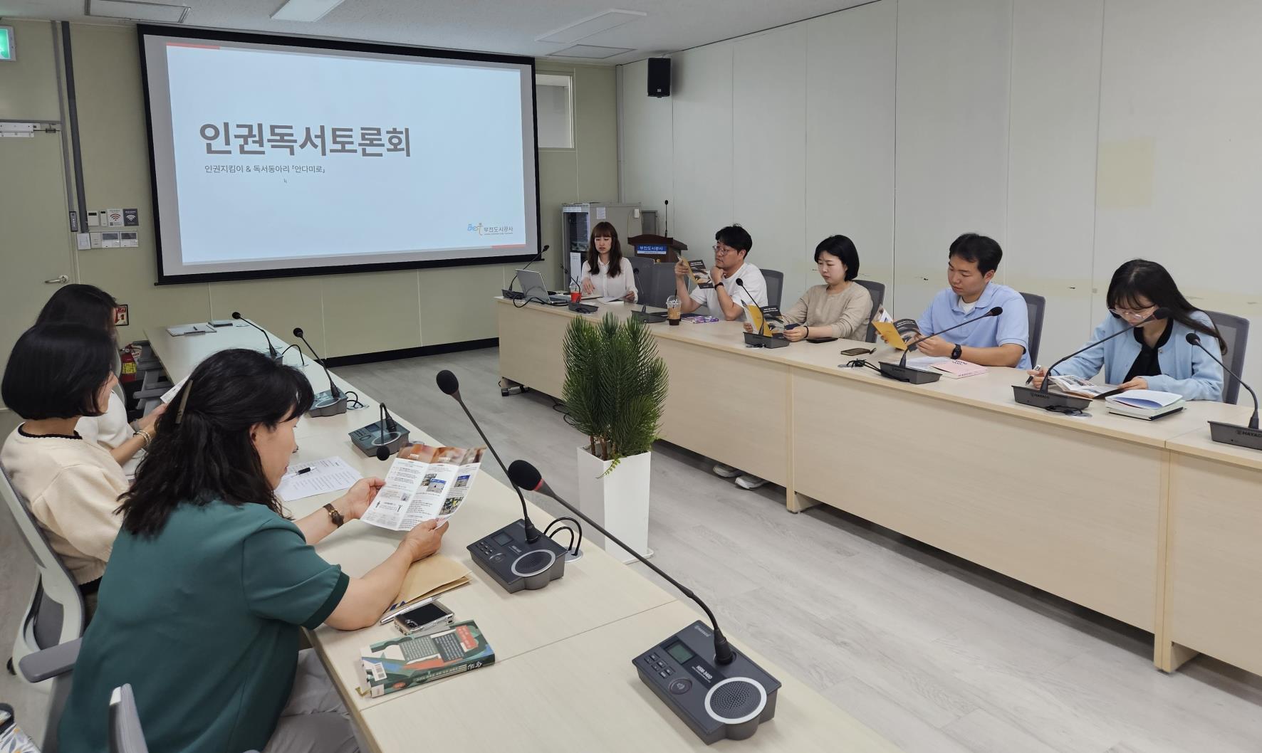 부천도시공사(사장 원명희)는 지식나눔문화 확산을 도모하고자 사내 독서동아리 「안다미로」 및 인권지킴이 회원 15명을 대상으로 합동 인권 독서토론회를 개최했다고 9일 밝혔다.