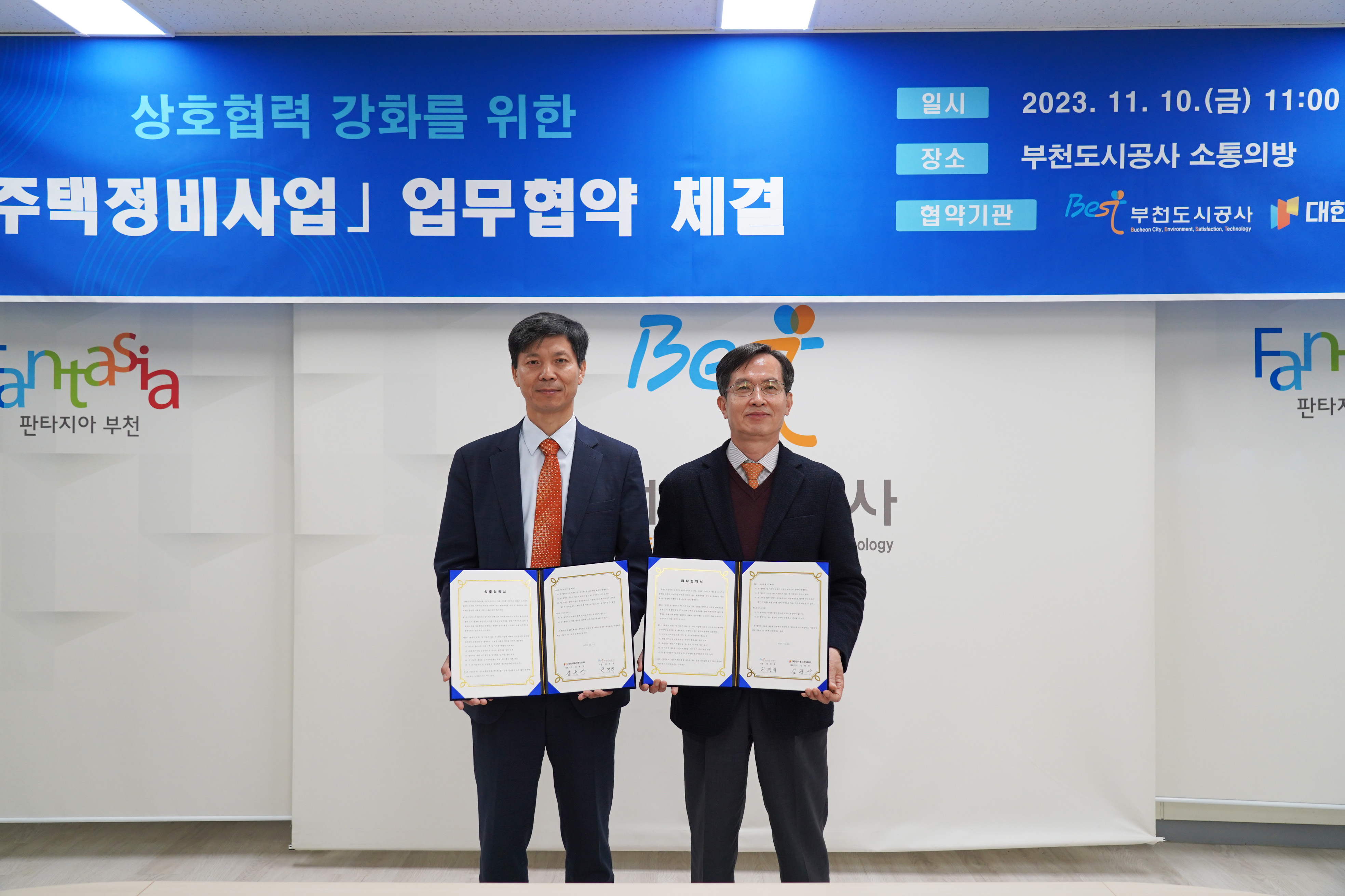 부천도시공사-(주)대한민국 동작 주택정비사업 업무협약 체결 작성자 최** 등록일자 2023년 11월 10일 13시 46분 50초 조회 441 2.협약기관장사진.jpg [ Size : 1.34MB , Down : 445 ] 미리보기 다운로드 1.협약 서명.jpg [ Size : 1.3MB , Down : 437 ] 미리보기 다운로드 3.협약 단체사진.JPG [ Size : 5.97MB , Down : 521 ] 미리보기 다운로드 목록보기