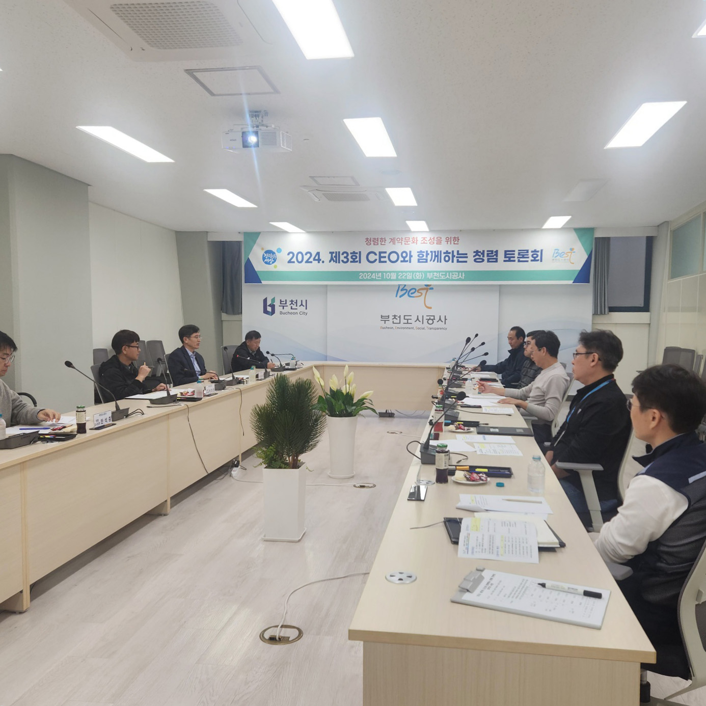 CEO와 함께하는 청렴계약토론회 작성자 최** 등록일자 2024년 10월 22일 11시 27분 19초 조회 200 청렴계약토론회 단체사진.jpg [ Size : 350.33KB , Down : 152 ] 미리보기 다운로드 청렴계약토론회 토론 모습.jpg [ Size : 327.34KB , Down : 173 ] 미리보기 다운로드 목록보기
