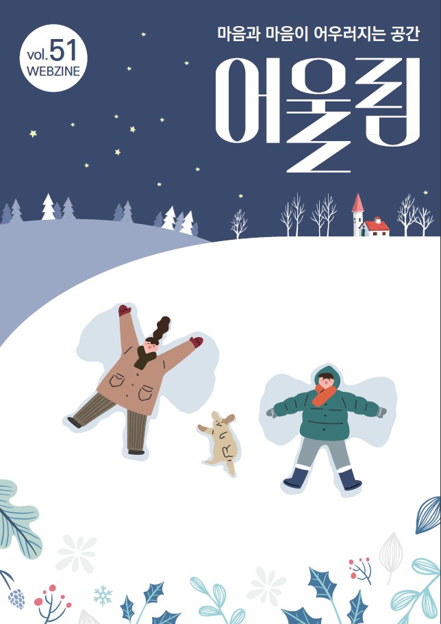 어울림 제51호 작성자 김** 등록일자 2023년 1월 26일 9시 57분 25초 조회 1,484 화면 캡처 2023-01-26 095639.jpg [ Size : 80.23KB , Down : 492 ] 미리보기 다운로드 소식지 어울림 51호(페이지) (1)-압축됨.pdf [ Size : 2.69MB , Down : 803 ] 미리보기 다운로드 목록보기