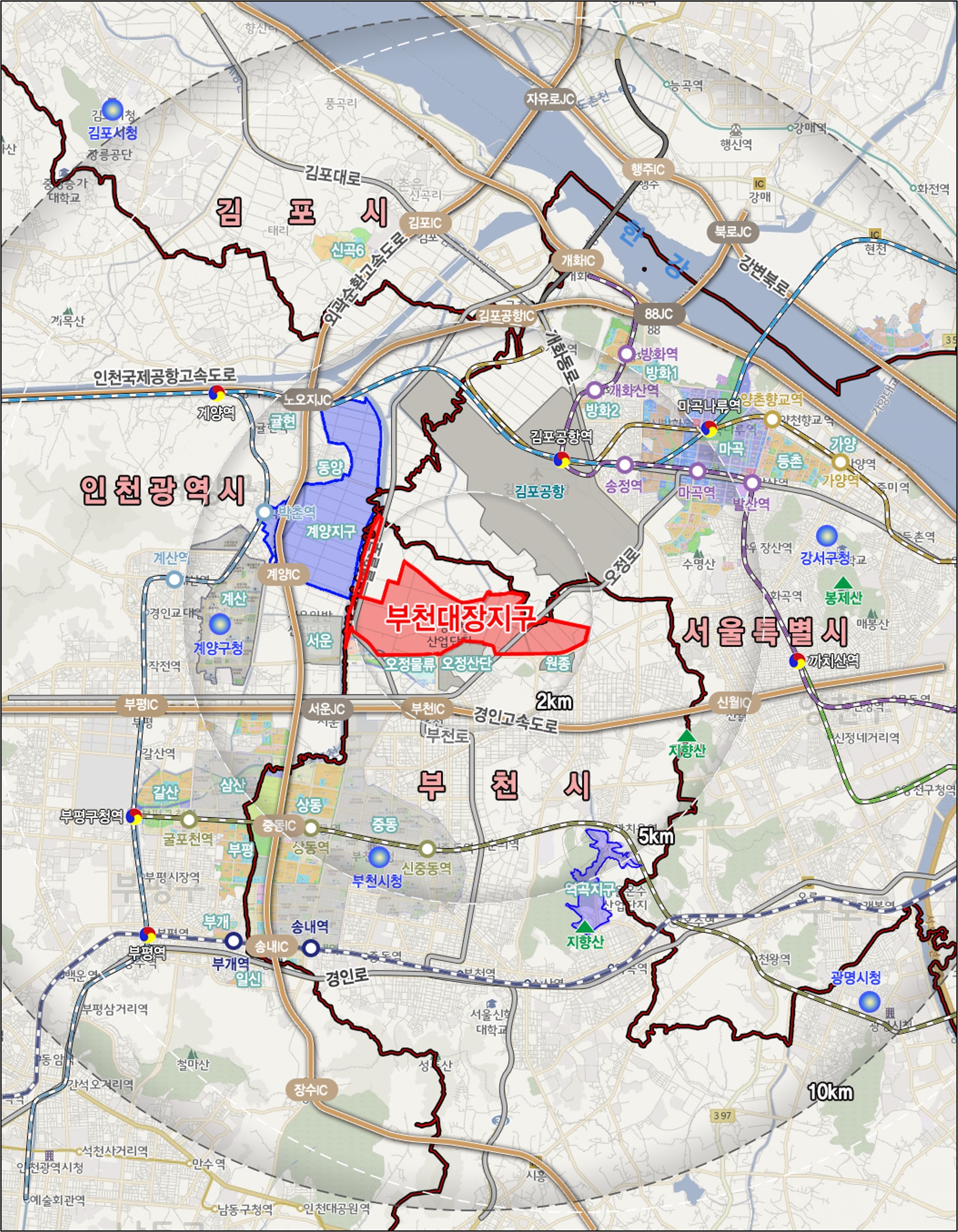 | 위 치 | 경기도 부천시 오정구 대장동, 오정동, 원종동, 삼정동 일원 인천광역시 계양구 동양동, 박촌동, 병방동 일원 |