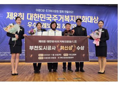 게시판 검색 표시줄수 : 3개씩 보기6개씩 보기9개씩 보기12개씩 보기15개씩 보기18개씩 보기21개씩 보기24개씩 보기27개씩 보기30개씩 보기 검색 대상 : 전체 검색제목내용 검색어 : 검색 총 38건(1/5페이지) 2025. 국토교통부 장관 표창 2026-01-29 제8회 대한민국주거복지문화대상 혁신상 2026-01-29 부천시주거복지센터, "GH 2025년 주거복지 아이디어 공모사업" 선정 2025-06-04 주거상향 지원사업 예비입주자 오리엔테이션 실시 2025-05-19 화재 취약계층에 자동소화멀티탭 등 화재예방 물품 보급 2025-05-17 2025년 주거환경개선 프로젝트 "맞춤형 주거복지 사업" 안내 2025-04-17 청년 주거 취업 문화지원을 위한 업무협약 체결 2025-02-27 2025년 제1회 주거복지 교육 2025-02-21 제7회 대한민국주거복지문화대상 "대상" 수상 2024-11-25 1 2 3 4 5
